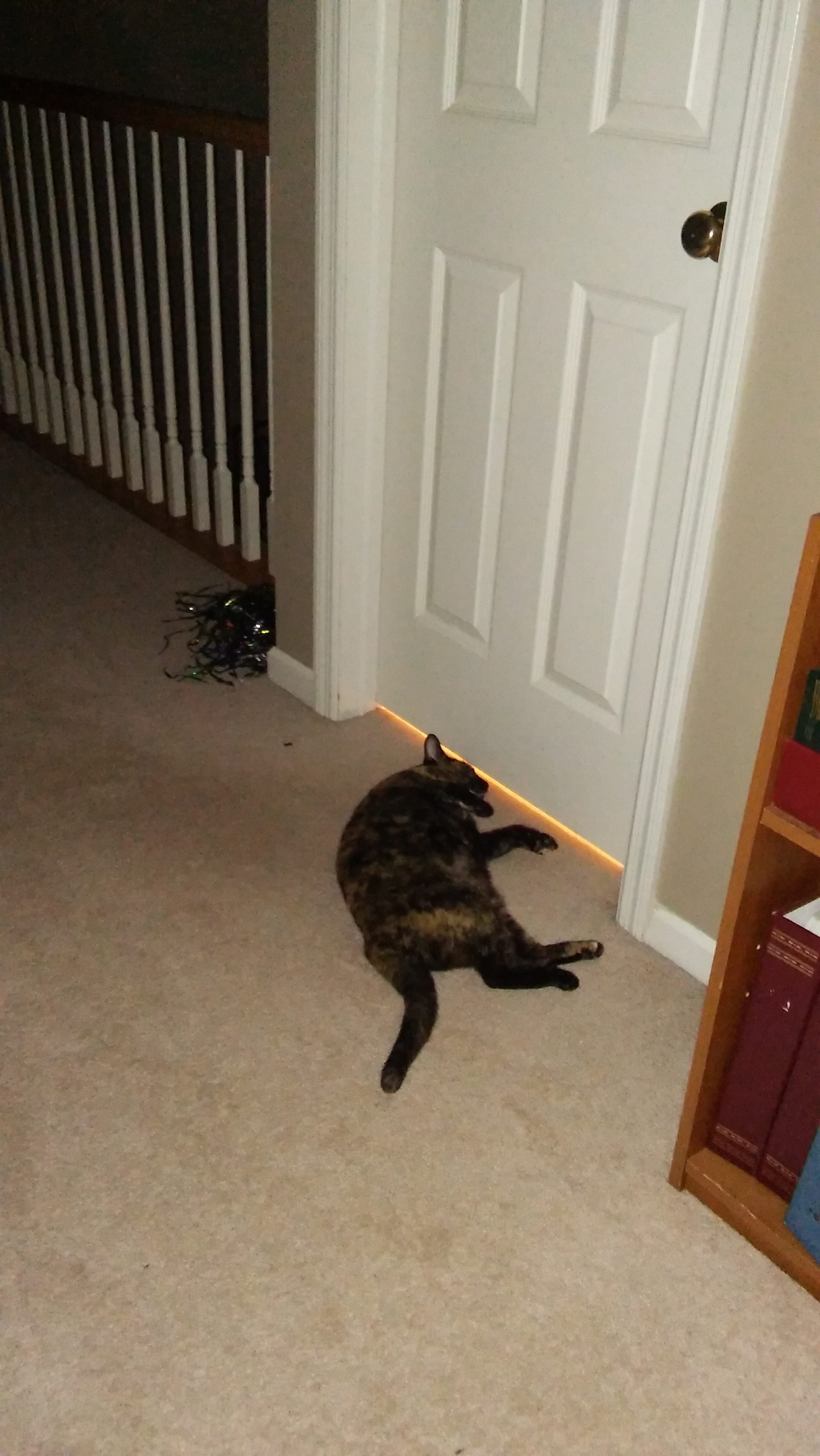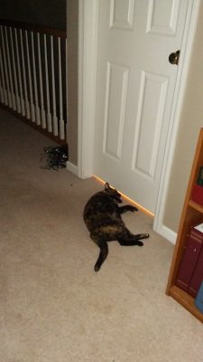 2017-03-16_Tiger lying on the floor outside the bathroom waiting for Tyler to come out
